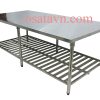 - Bàn inox có giá dưới và có thành sau được gia công bằng inox 304, 201 nhập ngoại.